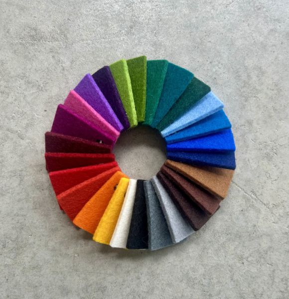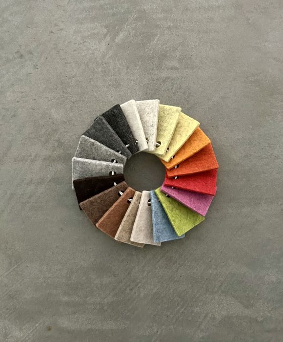 Our felt is made of carbonized wool, treated with a light paraffin solution to provide water repellency, dyed with eco-friendly vegetable based dyes, and is short sheared to prevent surface pilling. Our Merino wool blend designer felt meets the human-ecological requirements for Oeko-Tex® Standard 100, and is certified as sustainable, biodegradable, and free of harmful substances. Our felt has been tested and has passed the CAN/ULC-S102 for flame spread and smoke development, and is certified for architectural use in commercial buildings